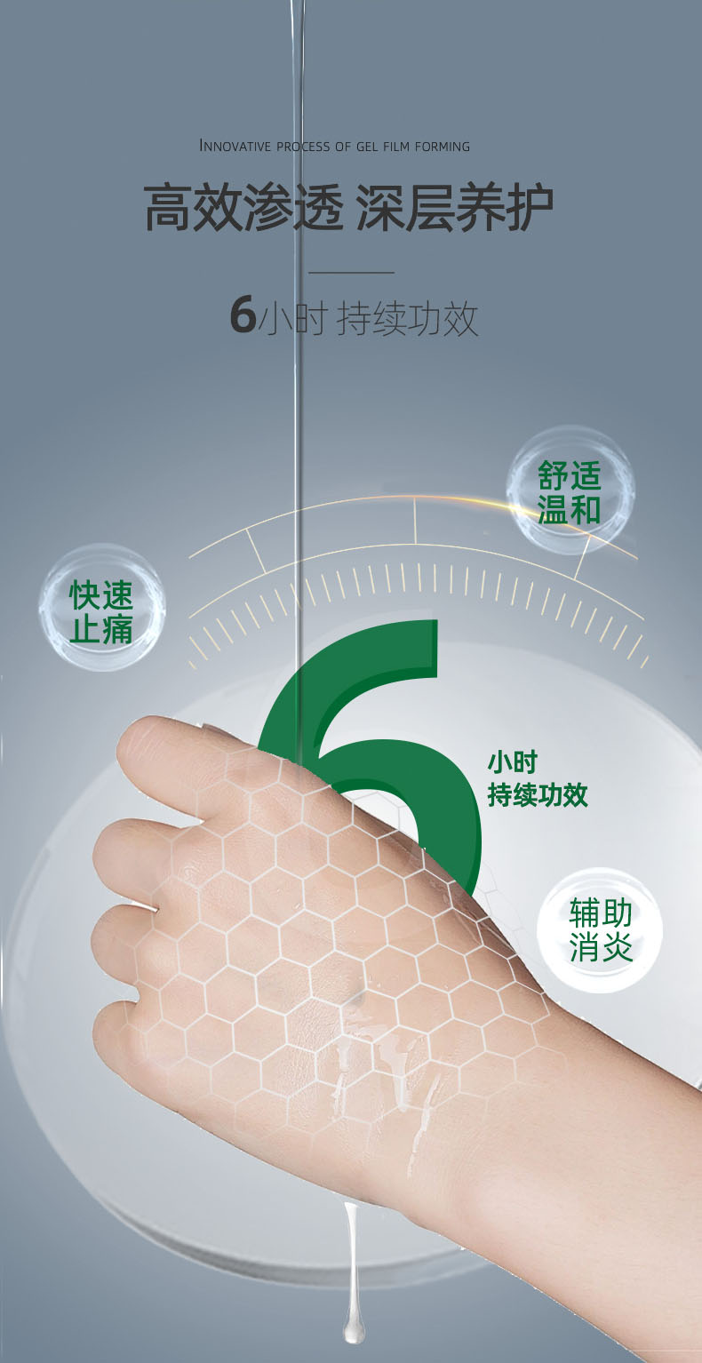 【使用说明】外用,用温水将涂敷部位清洁干净后,涂敷于患处,待成膜后可接 触衣物,敷 4-6 小时后撕掉涂膜。