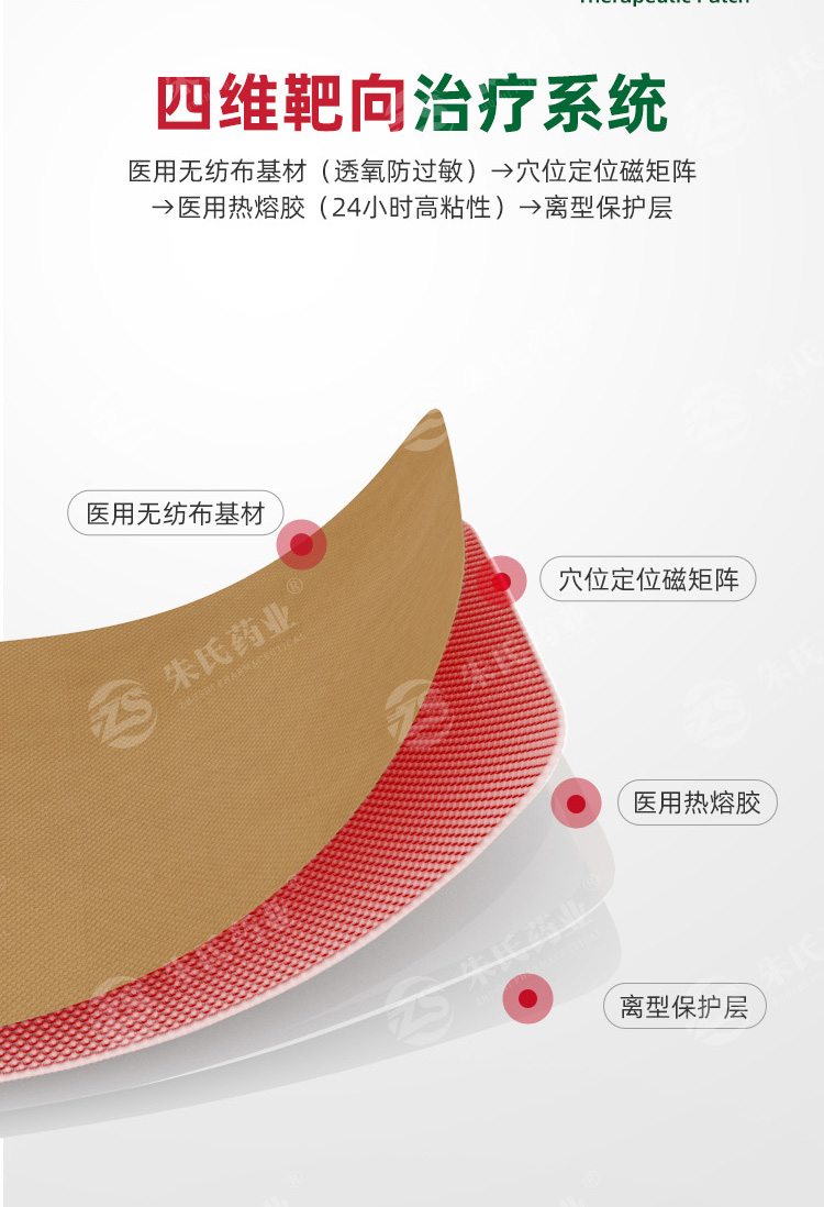 【结构组成】本品由无纺布、医用热熔胶、磁片和离型纸组成。