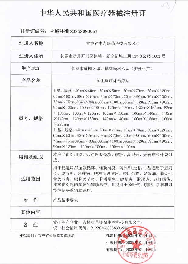 【医用远红外治疗贴】新文号已下证,可代加工