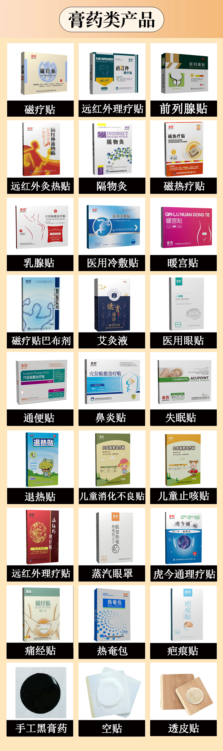 济南秦鲁药业有限公司产品目录涵盖医疗器械、健康食品、外用贴剂及个人护理四大领域,具体分类及代表产品如下: