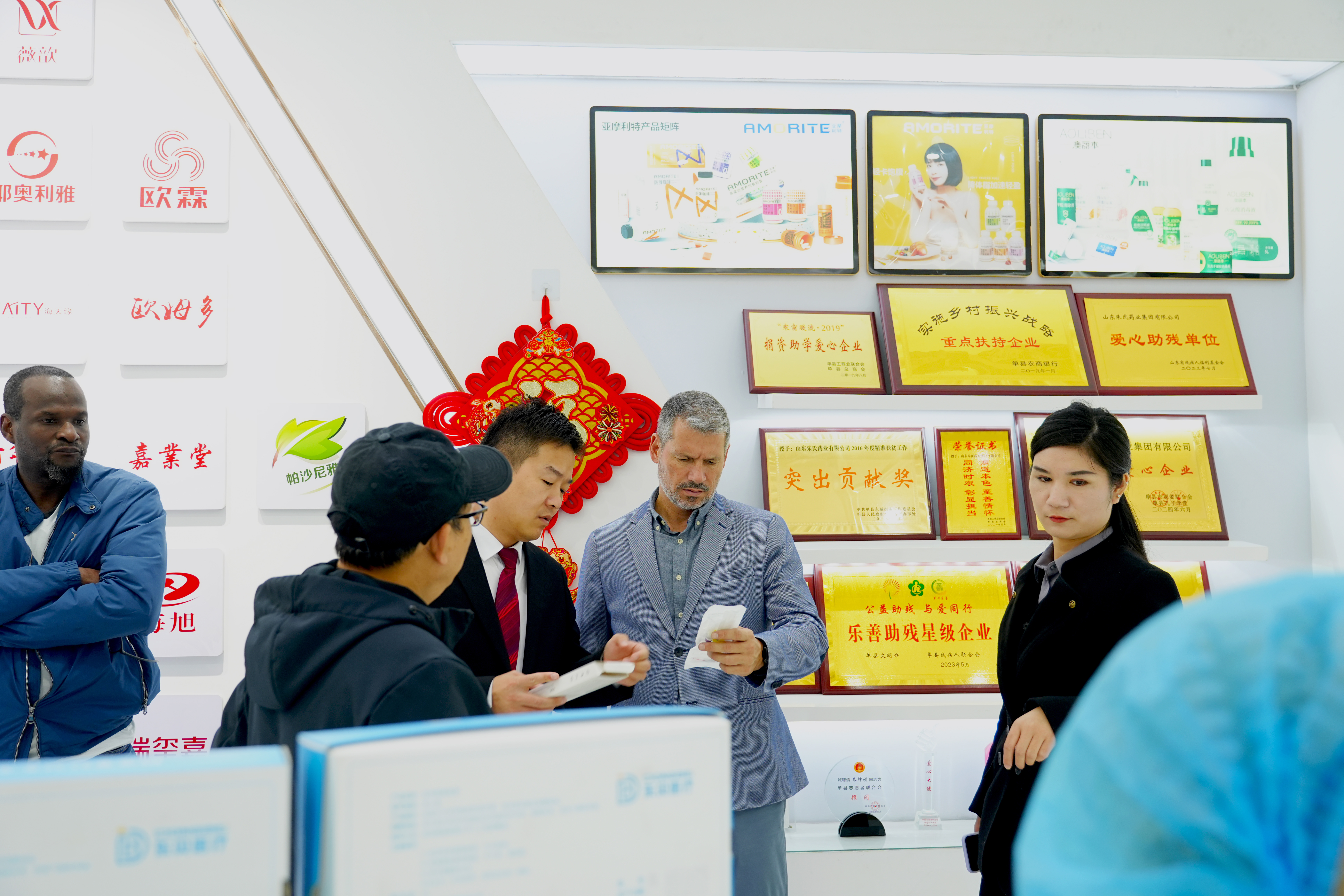 展厅探秘,感受创新成果 随后,嘉宾们移步至集团产品展厅。展厅内陈列着集团旗下涵盖医疗器械、健康产品等多个领域的创新成果。张冲总经理亲自为客人们进行了详尽的讲解,介绍了各系列产品的研发理念、技术优势与应用场景。