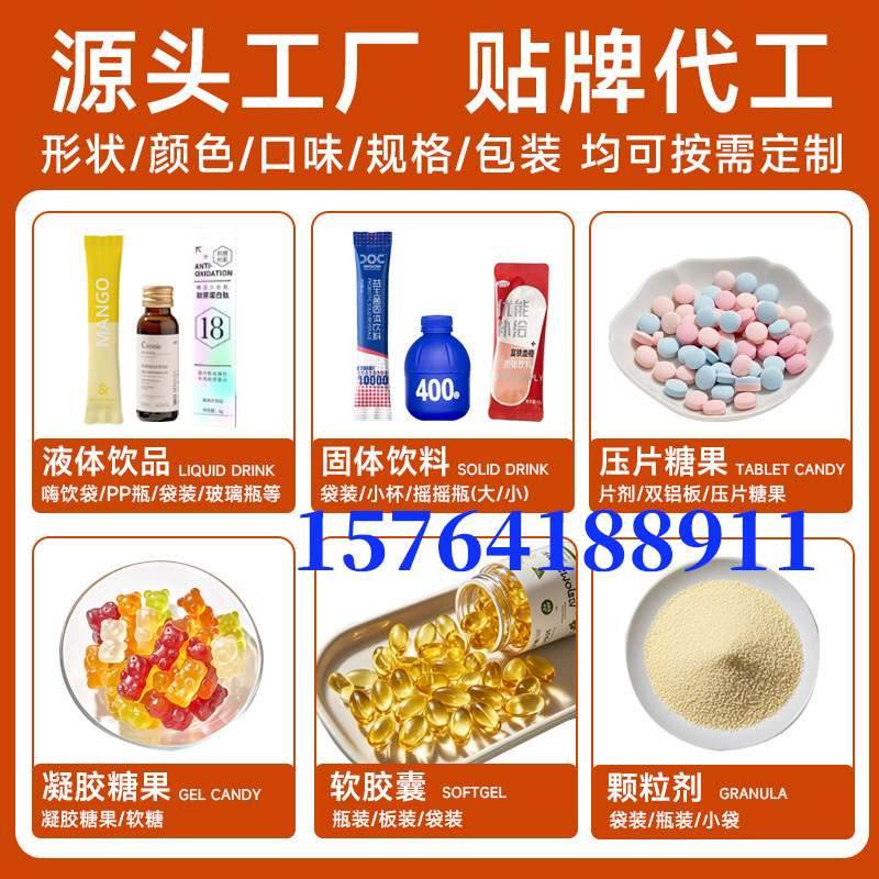 具体来说: 一、专属定制:从配方到包装全包办 配方研发:有成熟配方库,能根据你的需求调整成分,比如针对健身人群的高蛋白代餐或上班族的便携饼干。 剂型灵活:支持软硬胶囊、粉剂、片剂等多种形态,小批量试产或大规模量产都能满足。