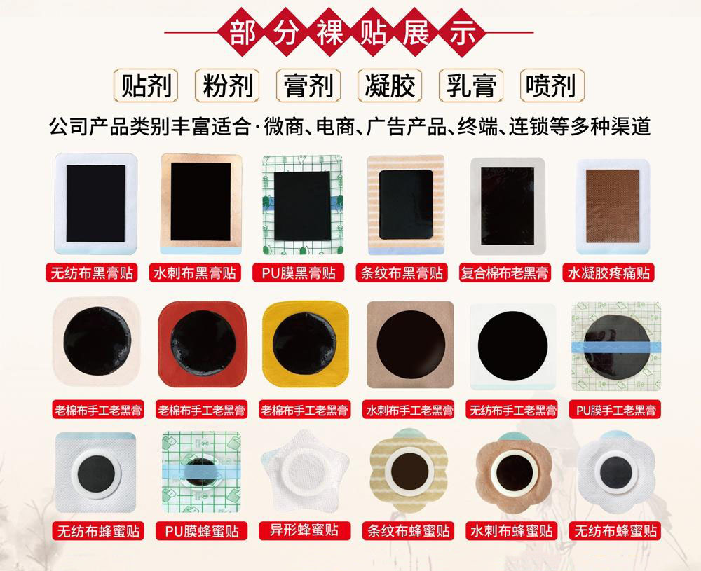 - 明确产品类型:黑膏药、凝胶贴、暖宫贴、退热贴等