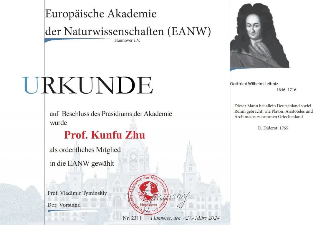 据悉,欧洲自然科学院院士的选举过程极为严格,需要经过院士推荐、选举、团审议、勋章授予等多个环节,以确保每一位当选的院士都是在各自领域具有成就和广泛影响力的科学家和学者。这一荣誉的获得不仅是对朱坤福先生在自然科学领域取得的优异成绩的肯定,更是学术荣誉和身份的象征。