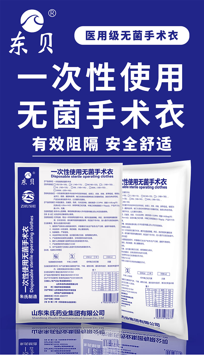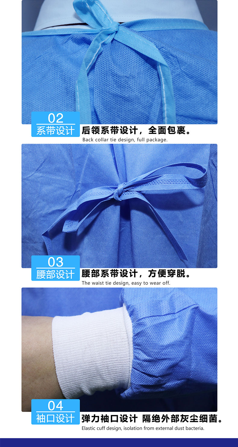 【适用范围】供手术人员穿着,降低感染源向病人手术创面传播以防止术后创面感染。