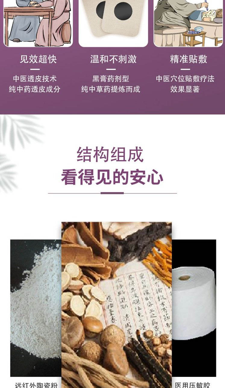 【使用方法】清洁相应穴位先以拇指依次揉按相应穴位,每穴1—2分钟,范围由小到大,力量由轻到重,探寻敏感点。2、确认包装无破损后,打开包装,取出穴位贴敷治疗贴,将隔离膜撕去,以钢珠对准相应穴位敏感点贴压,1片/穴/天,每日适度按压3—5次,每次3-5分钟,1个疗程为10天,疗程间隔2-3天。