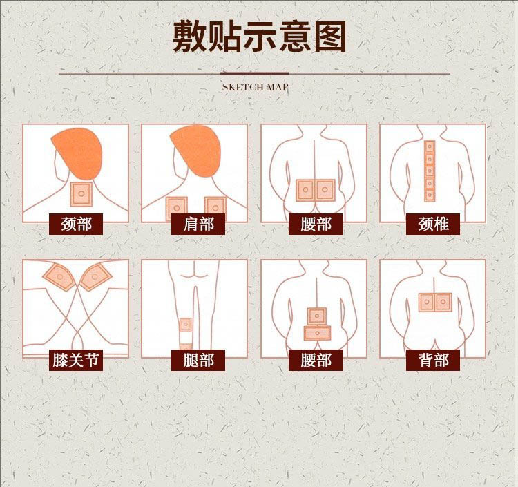 【使用方法】沿易撕口撕开包装袋,取出贴片,揭去薄膜,将冷胶面贴在损伤位置。可 根据损伤不同的部位, 剪成适当大小使用。每天使用1~3片,每片可持续4-8小时。冷藏后使用效果更佳。