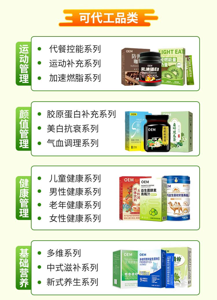 OEM/ODM/OBM灵活合作:支持自主品牌加工、品牌输出专家服务及现有品牌转让,提供从配方研发到包装设计的全流程定制。