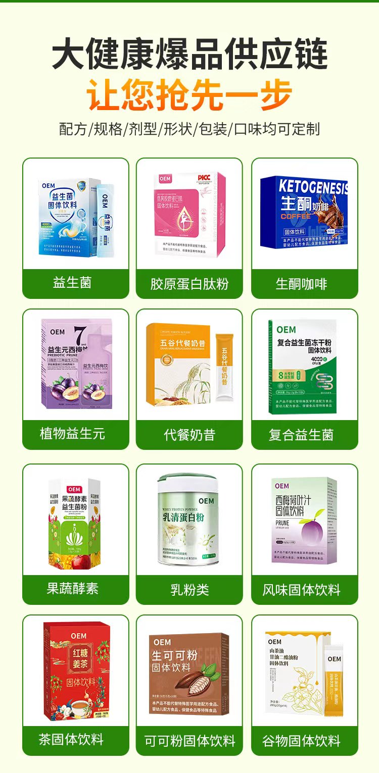 集团作为功能性食品代工源头厂家,在肠道调节、运动营养、口服美容、免疫支持等六大健康领域具备全产业链服务能力。其核心优势体现在以下方面: