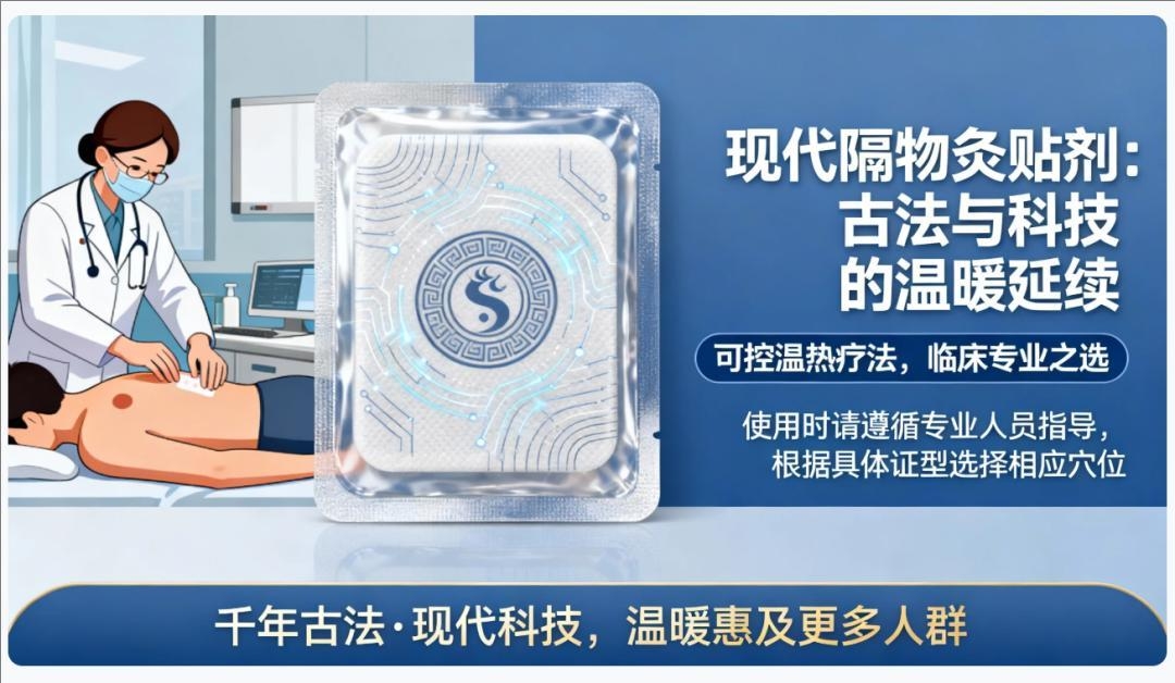 现代隔物灸贴剂作为医疗器械产品,为临床提供了可控的温热疗法选择。使用时请遵循专业人员指导,根据具体证型选择相应穴位。 当千年古法遇见现代科技,隔物灸正以崭新形态,在临床一线延续着它的温暖使命——有效的温热疗法,惠及更多需要的人群。