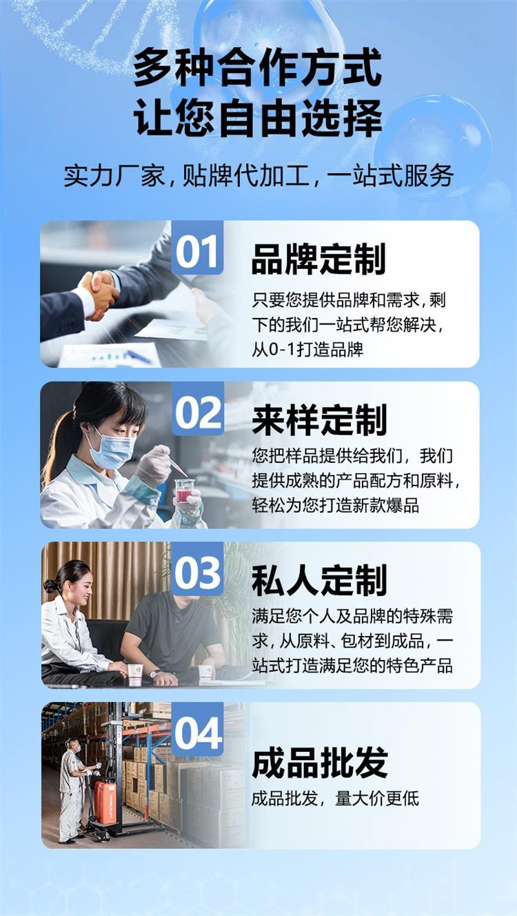 - 确认合作模式:OEM(用厂方配方) 或 ODM(定制配方+包材)